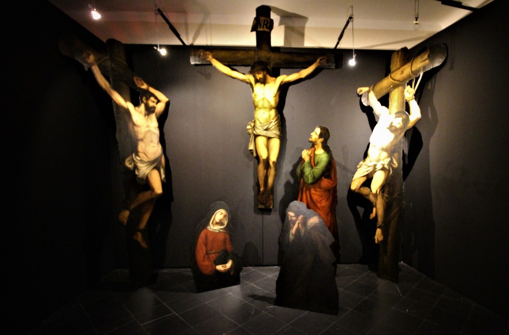 Nella foto “Cartelami della Passione ” . I “Cartelami” erano sagome bidimensionali che venivano dipinte per mettere in scena i protagonisti della Settimana Santa con figure a grandezza naturale esposte durante la Quaresima, e poi riposte nelle Sacrestie e negli oratori, potevano essere di cartone ( da cui il nome ) di tela, latta o legno. La foto é stata da me scattata durante la visita della mostra ” Barocco Segreto ” organizzata a Genova nel palazzo Della Meridiana da Anna Orlando e Agnese Marengo.