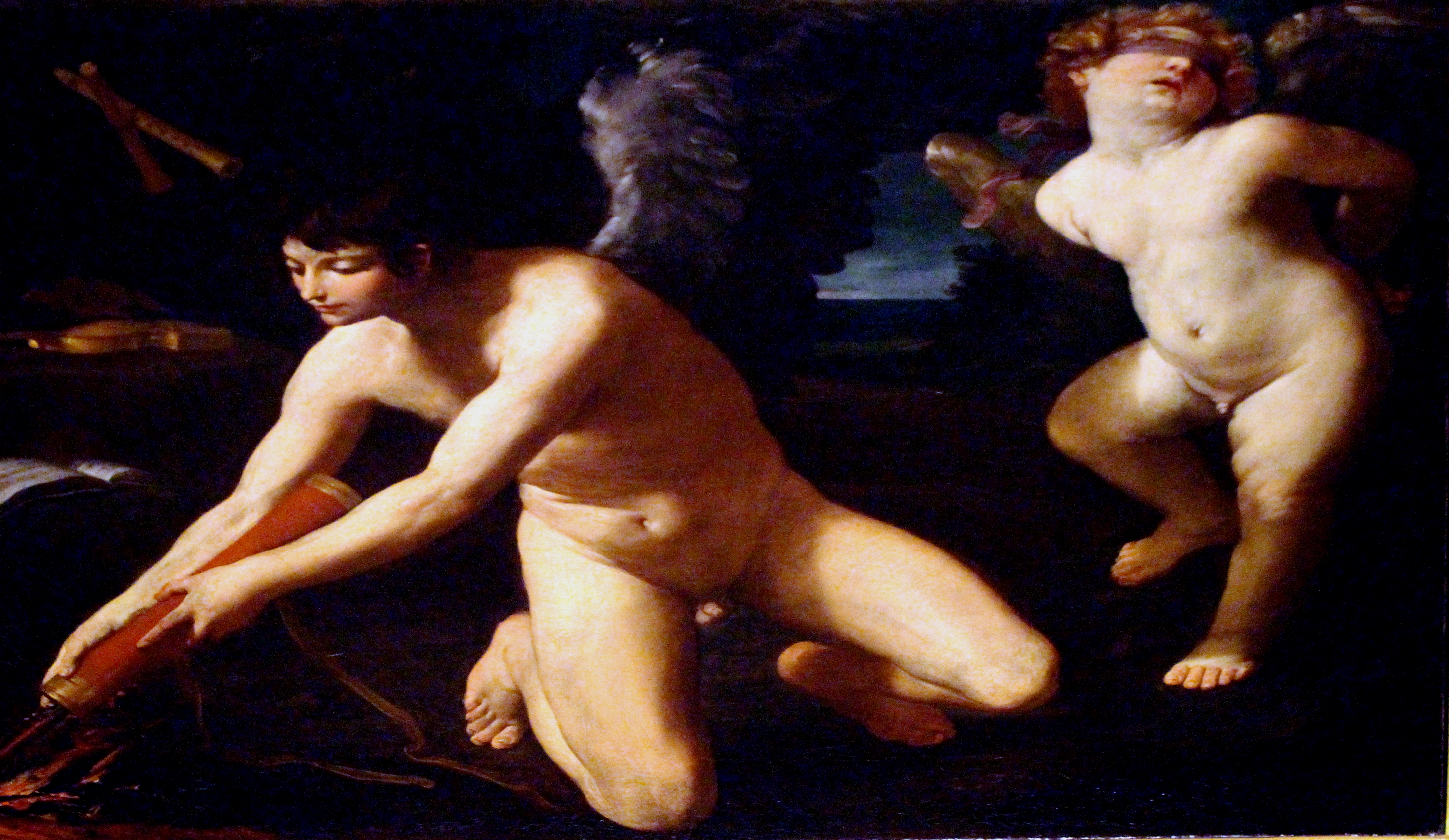 A Genova nella terza sala del piano nobile del palazzo dei marchesi Spinola in Piazza Pellicceria oggi Galleria Nazionale, si può ammirare questo dipinto di Guido Reni ( Bologna 1575 – 1642 ) realizzato nel periodo di piena maturità dell’ artista verso il 1622, titolo dell’ opera : ” Amore sacro ed Amor profano “, evidente in quest’ opera l’ influenza della poetica del Caravaggio.