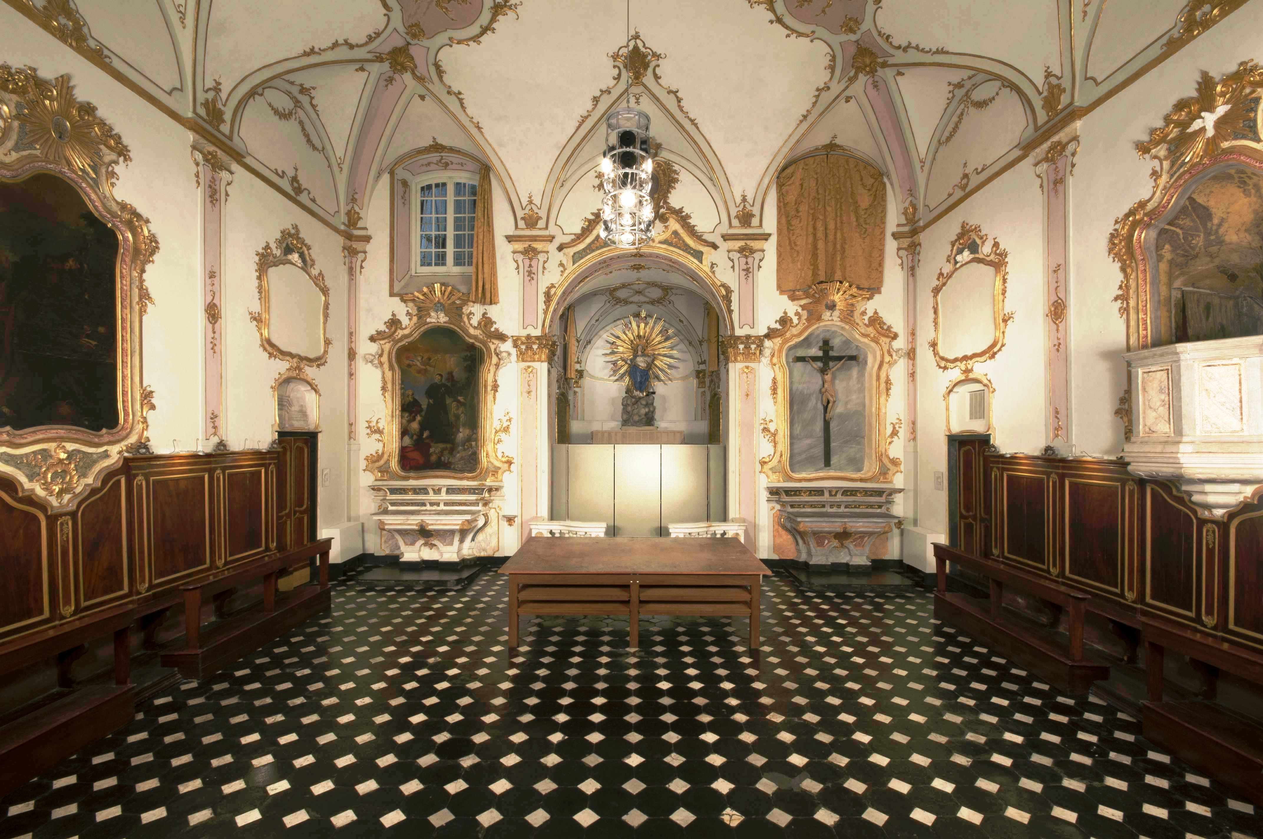 A Genova, In un anonimo palazzo di Salita San Francesco al n.7, salendo al primo piano, si resta senza parole, dietro un portoncino si trova l’ antica sala capitolare della chiesa di San Francesco di Castelletto demolita nel XIX secolo. La sala capitolare fu trasformata nell’ Oratorio dell’ Immacolata nel VIII secolo ed é ancora lì con i suoi splendidi decori in stile barocchetto genovese.