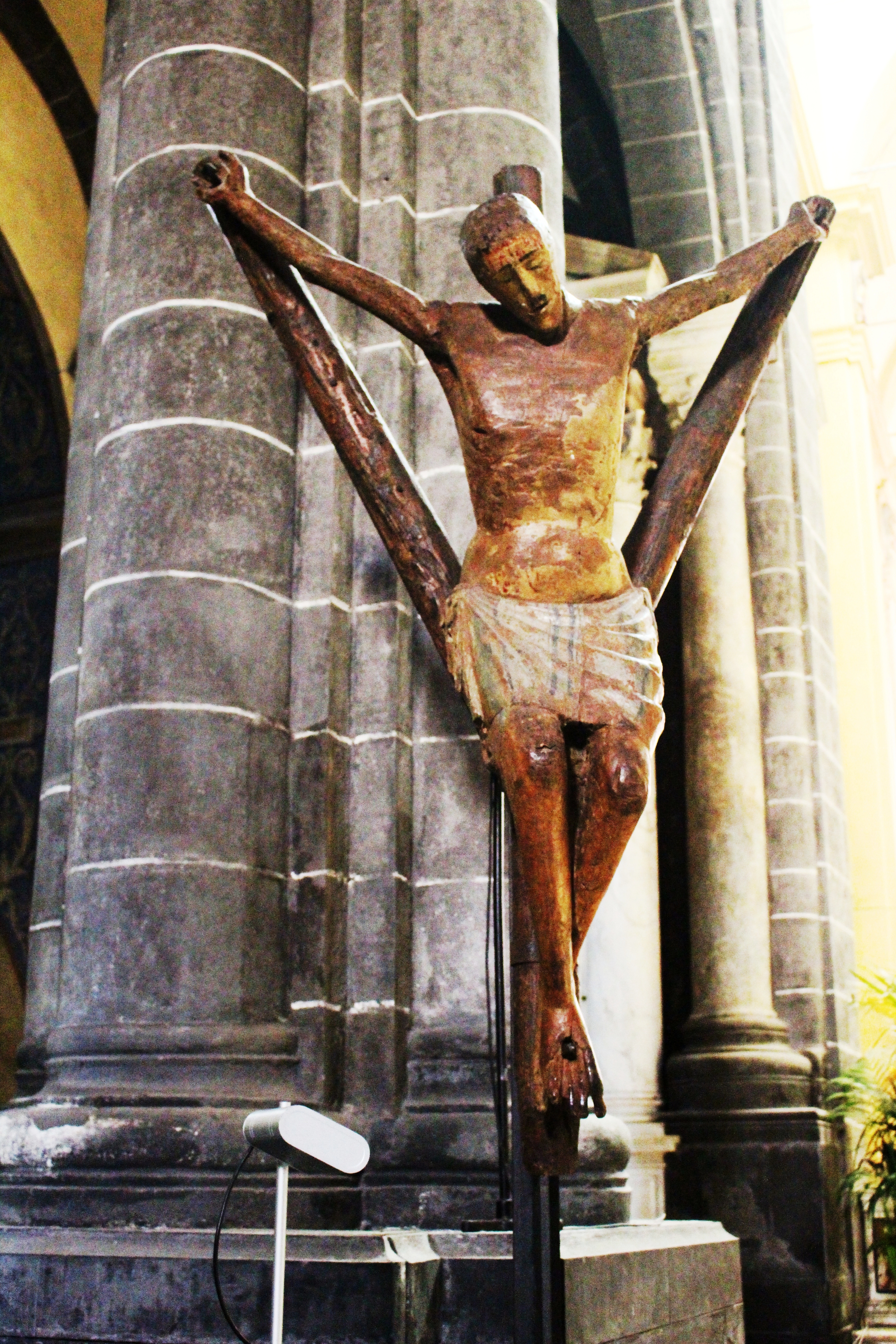 Nella chiesa di Santa Maria di Castello, in una cappella a lui dedicata, c’ é un Crocifisso che ebbe molta importanza per il numero di persone che sin dai tempi più remoti ottennero grazie da lui, ma questo Cristo non é l’ originale ma una copia. E’ una storia singolare quella di questa statua, si dice che sia arrivata a Genova al tempo delle crociate e quindi che fosse in Terra Santa, ma la croce sagomata a ipsilon farebbe invece pensare ad un manufatto nordico, comunque in ogni caso stiamo parlando d’ una scultura lignea della seconda metà XIII secolo. In epoca barocca la barba ed i capelli in legno intagliato gli furono piallati via dai frati e sostituiti da una parrucca di capelli veri e da una folta barba, proprio in quel periodo pare sia accaduto il miracolo per il quale una giovinetta incinta si sia rivolta a Lui, davanti a testimoni, chiedendogli se era vero che il suo innamorato avesse promesso di sposarla, ed il Cristo abbassò la testa per annuire, così il mascalzone, che mentendo rifiutava la paternità, fu costretto a sposarsi suo malgrado. Negli anni 70 del secolo scorso, durante un restauro conservativo, fu tolta la barba finta e la parrucca al Cristo, ma la gente non lo riconosceva più come la statua dei miracoli, così fu fatta una copia con barba e parrucca e messa sull’ altare, mentre il Cristo originale fu ed é ancora posto provvisoriamente in un angolino nella navata centrale, le persone gli passano vicino distrattamente e vanno spediti a pregare nella cappella del falso Crocifisso e solo a lui lasciano gli ex voto. Vogliamo rendere onore con questo post al vero Cristo Moro di Santa Maria di Castello.