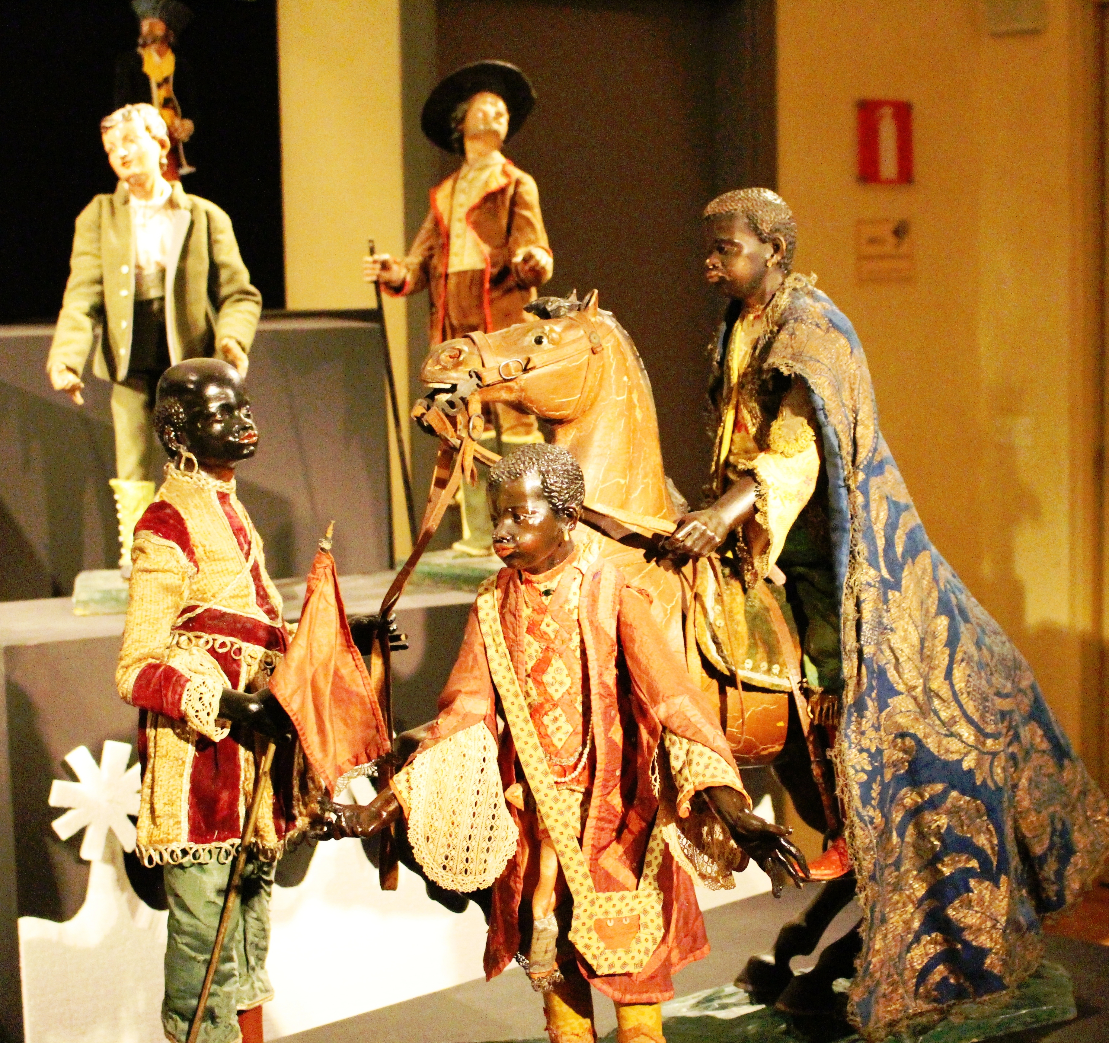 La tradizione del Presepe è radicata a Genova quasi come a Napoli, diversamente da quelle napoletane realizzate in terracotta, le statuine presepiali venivano realizzate in legno intagliato, scolpito e dipinto in policromia, alle teste venivano messi occhi in pasta vitrea, mentre i busti e le membra venivano realizzate in stoppa e filo di ferro per poter atteggiare i personaggi in diverse posizioni, alcune sono veri e propri capolavori, tanto che si è ipotizzato potessero esser state fatte nella bottega del grande Anton Maria Maragliano ( Genova 1664 – 1741 ) famoso per la realizzazione di grandi apparati processionali e di sculture realizzate su legno, ma prove certe non ce ne sono. Quelle della foto sono conservate nel Museo dei beni culturali dei Cappuccini e fanno parte del corteo di Baldassarre, il nero dei Magi.