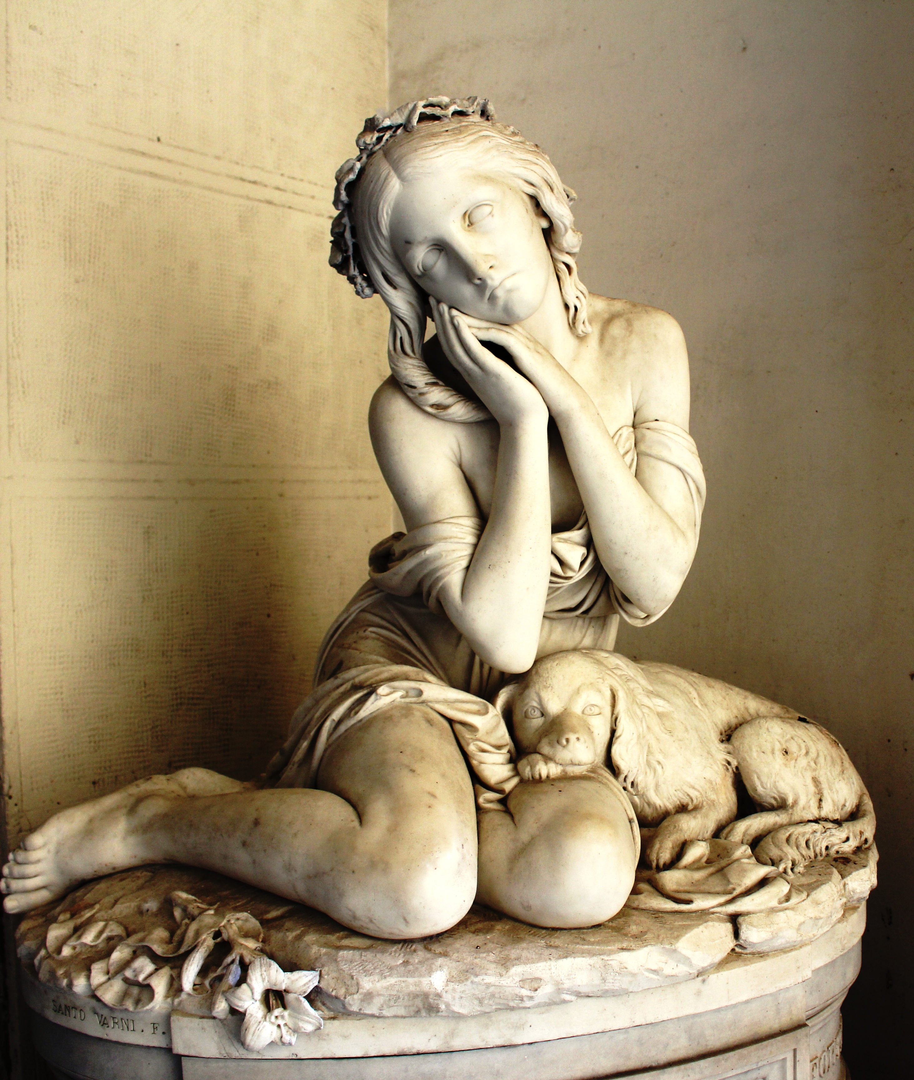 Cimitero Monumentale di Staglieno ( Genova ), Tomba Varni scultura di Santo Varni in marmo datata 1875.