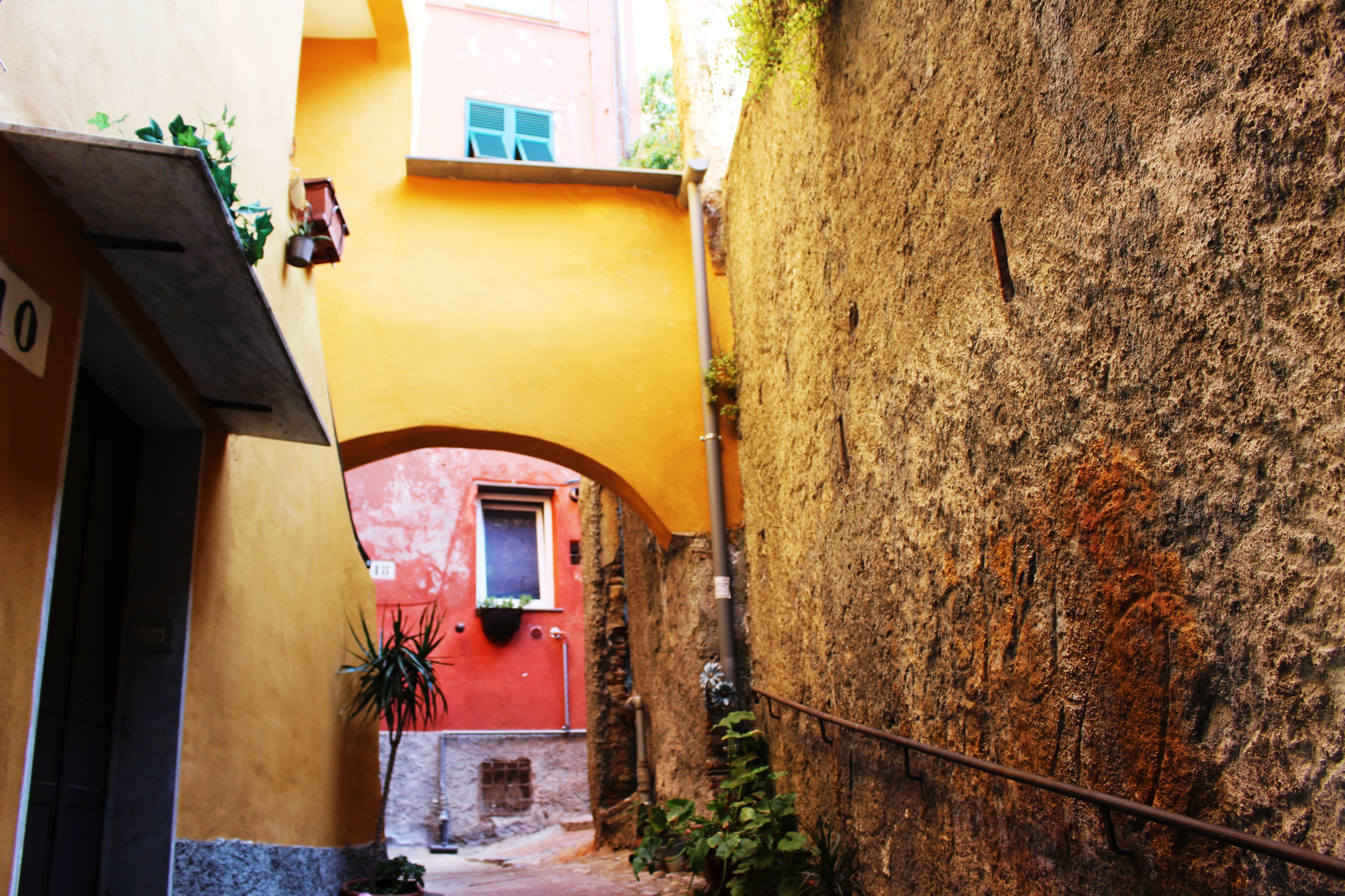 A pochi minuti di strada dal centro città, c’ é l’ antico quartiere medioevale del Carmine, qui il tempo sembra si sia fermato, niente auto né motorini scoppiettanti, solo il rumore dei tuoi passi ed il colore del cielo che s’ intravede dagli stretti caruggi ( vicoli ). nella foto salita Monterosso.
