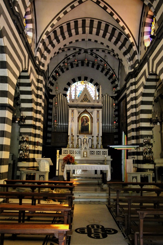 A Voltri, sulla stupenda collina del Castellano, nel parco che appartenne ai duchi di Galliera, é il Santuario di N.S. delle Grazie dove secondo la tradizione popolare la Madonna apparve agli invasori austriaci nel 1747 vestita con una veste azzurra e con una spada in mano a difesa dei genovesi assediati. Singolare questa versione guerresca della madre del Salvatore che comunque non voglio commentare. Il tempio é di fatto molto più antico, le sue origini non documentate alcuni le fanno addirittura risalire alla fine del primo secolo dopo Cristo, anche questa affermazione mi pare abbastanza discutibile perché il cristianesimo della prima ora tendeva a celebrare i suoi riti e diffondeva la “Parola di Gesù ” in clandestinità, stante che i principi d’amore e di fraternità non si conciliavano per niente con l’impero romano e soprattutto con la pax romana , della serie: ho accetti la supremazia di Roma o verrai annientato. La chiesa é a tre navate e custodisce un bel dipinto di Luca Cambiaso (Genova 1527 – Escorial 1585 ) uno dei massimi artisti genovesi del XVI secolo, rappresentante la Vergine e Santi.