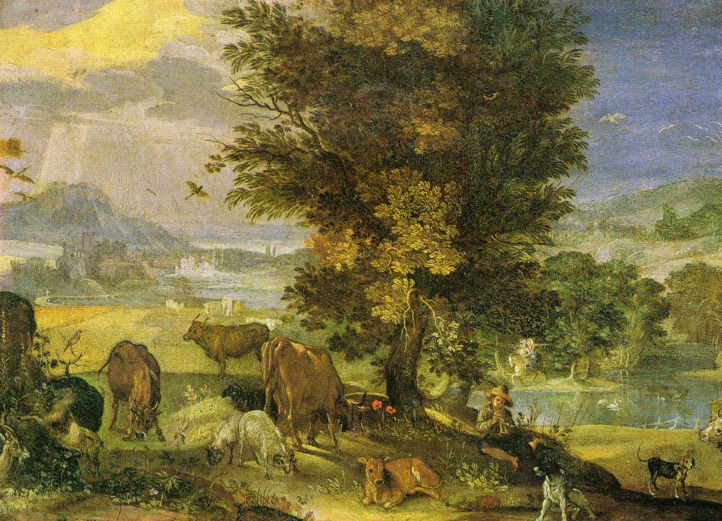 Sinibaldo Scorza ( Voltaggio 1589- Genova 1611 ) nato in un’area decentrata posta tra la Liguria ed il Piemonte, all’età di soli 15 anni si trasferì a Genova e fu accettato come apprendista nella bottega del pittore G.B. Paggi “…ove rivelò, sin dall’inizio, una particolare inclinazione per fiori, paesaggi, uccellini, quadrupedi et altre somiglianti gentilezze…” così scriveva di lui il Soprani nel 1674. Nel 1619 si trasferì a Torino dove perfezionò il suo stile pittorico , quindi nel 1625 ritornò a Genova, ma venne accusato di tradimento ed esiliato a Massa Carrara in Toscana, da lì si trasferì a Roma dove stette due anni, molto proficui per lui, infatti ebbe modo di conoscere i numerosi artisti fiamminghi che gravitavano intorno alla corte papale speranzosi di acquisire prestigiose committenze, dopo di che ritornò a Genova nel 1627 e vi risiedette sino alla sua morte. Il Nostro fu uno dei primi artisti che a Genova si dedicarono alla pittura di paesaggio, soprattutto quella dove protagonisti sono la natura e gli animali. Nonostante abbia viaggiato molto, fece sempre ritorno ai luoghi dove nacque dai quali trasse l’ispirazione per molte sue opere anche contaminando la sua pittura con opere di altri artisti che conobbe nei suoi viaggi. La sua poetica é costantemente tesa a dimostrare la bellezza e la tranquillità della vita campestre che porta all’individuo pace e serenità. Il Nostro fu anche miniaturista ed in questa veste fu grandemente apprezzato, peccato che delle sue miniature poco sia rimasto, in quanto disperse in collezioni private magari attribuite ad anonimi pittori. Il dipinto mostrato nella foto é un opera ad olio su rame di cm. 26 x cm.36 rappresentante un Paesaggio con pastore ed animali firmato a sinistra in basso in corsivo “Sinibaldo Scorza” realizzato nel periodo di piena maturità dell’artista ed appartenente al Museo dell’Accademia Ligustica di Belle Arti di Genova. Questo piccolo capolavoro fu esposto nella mostra ” Sinibaldo Scorza” Favole e natura all’alba del Barocco, curata dalla dott.ssa Anna Orlando.